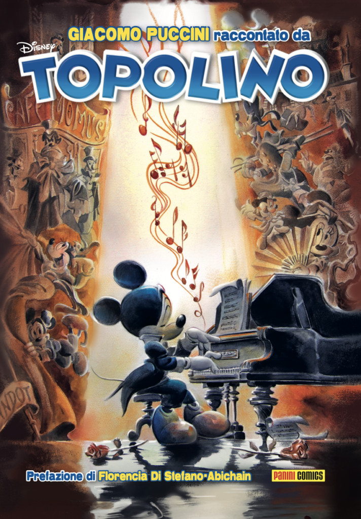 Le celebrazioni proseguono inoltre con nuovo TopoLibro da collezione, Giacomo Puccini raccontato da Topolino (disponibile insieme al numero 3597 di Topolino). Una vera chicca per tutti gli appassionati di palchi, loggioni e fumetto d’autore. Il volume raccoglie alcune tra le più belle storie disneyane dedicate al grande compositore toscano, a partire da Paperonbot, scritta da Antonella Pandini per i disegni di Valerio Held, ispirata a una delle più celebri opere pucciniane, la Turandot. Si prosegue poi con altre due parodie disneyane ispirate alle opere del grande Maestro toscano: Paperina “fanciulla del West”, sceneggiata da Gian Giacomo Dalmasso e disegnata da Giuseppe Perego, e Paperino e la piccola Butterfly, di Guido Martina e Giovan Battista Carpi. Inoltre, il TopoLibro contiene altre storie dedicate alla lirica e al mondo della musica in generale, tra cui Paperino e il segreto del tenore smemorato, sceneggiata da Stefano Petruccelli con la partecipazione straordinaria di Stefano Bollani. Ad arricchire il volume, la prefazione di Florencia Di Stefano-Abichain speaker radiofonica e podcaster e una splendida cover firmata da PaoloMottura.