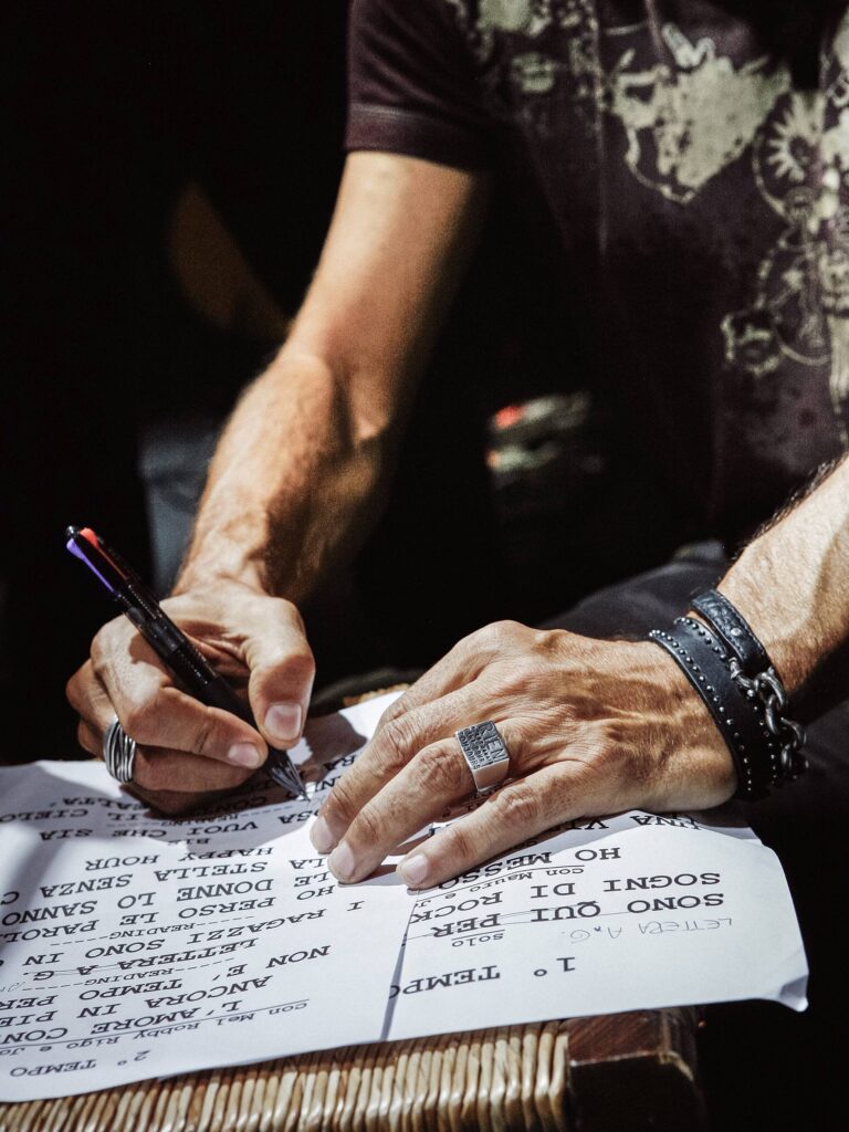 Una sezione speciale, sempre pensata per l’occasione, espone anche alcuni abiti di scena e le chitarre originali di Ligabue immortalate nelle fotografie. A contorno una carrellata di immagini altre – oltre 500 – di pubblico ai concerti, fan e momenti corali che coprono un’intera parete. Il filo impalpabile che guida il percorso è dato da ispirazione e visione, unite al raro dono di saper scomparire dietro l’obiettivo, caratteristiche che fanno di Jarno Iotti il fotografo capace come nessun altro di cogliere l’attimo fuggente nell’anima del musicista amico e concittadino.