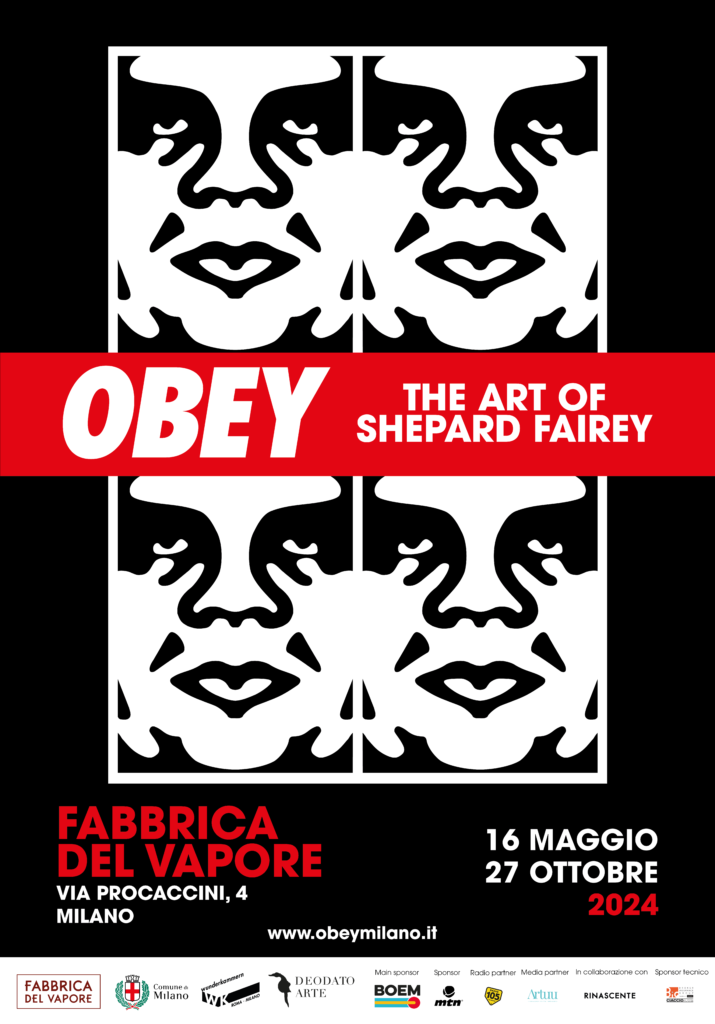 OBEY: The Art of Shepard Fairey porta in Italia per la prima volta un’esposizione museale interamente dedicata a Shepard Fairey (OBEY), uno degli street artist più influenti e acclamati a livello internazionale che con la sua arte ha mostrato l’evoluzione della Street Art e dei suoi linguaggi. La mostra, aperta dal 16 maggio al 27 ottobre 2024 negli spazi della Cattedrale presso la Fabbrica del Vapore di Milano, offrirà al pubblico un’opportunità senza precedenti di esplorare l’universo artistico di Obey: le foto.