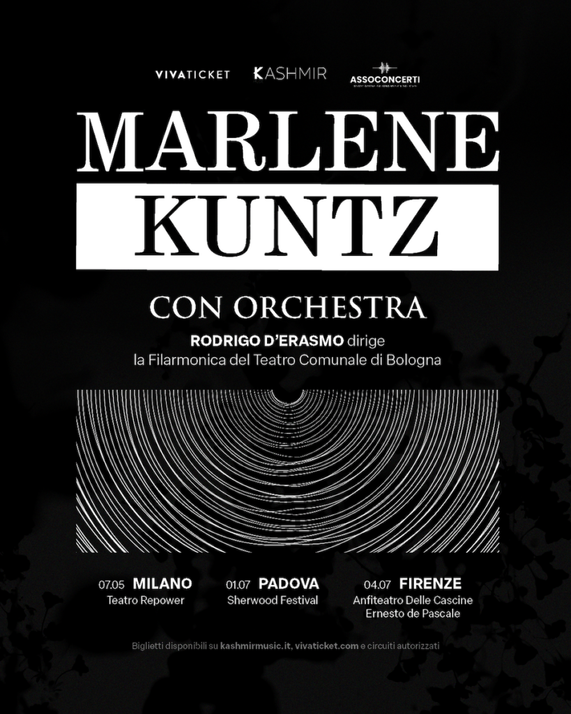 La band porterà in scena il proprio repertorio musicale con il prestigioso accompagnamento di un’orchestra sinfonica, ma non una qualsiasi: sarà infatti la Filarmonica del Teatro Comunale di Bologna, una delle istituzioni musicali più importanti d’Italia, a unirsi ai Marlene Kuntz. A dirigere l’orchestra ci sarà Rodrigo D’Erasmo, musicista e direttore d’orchestra di straordinario talento, che aggiungerà il suo tocco unico e visionario a questo progetto.